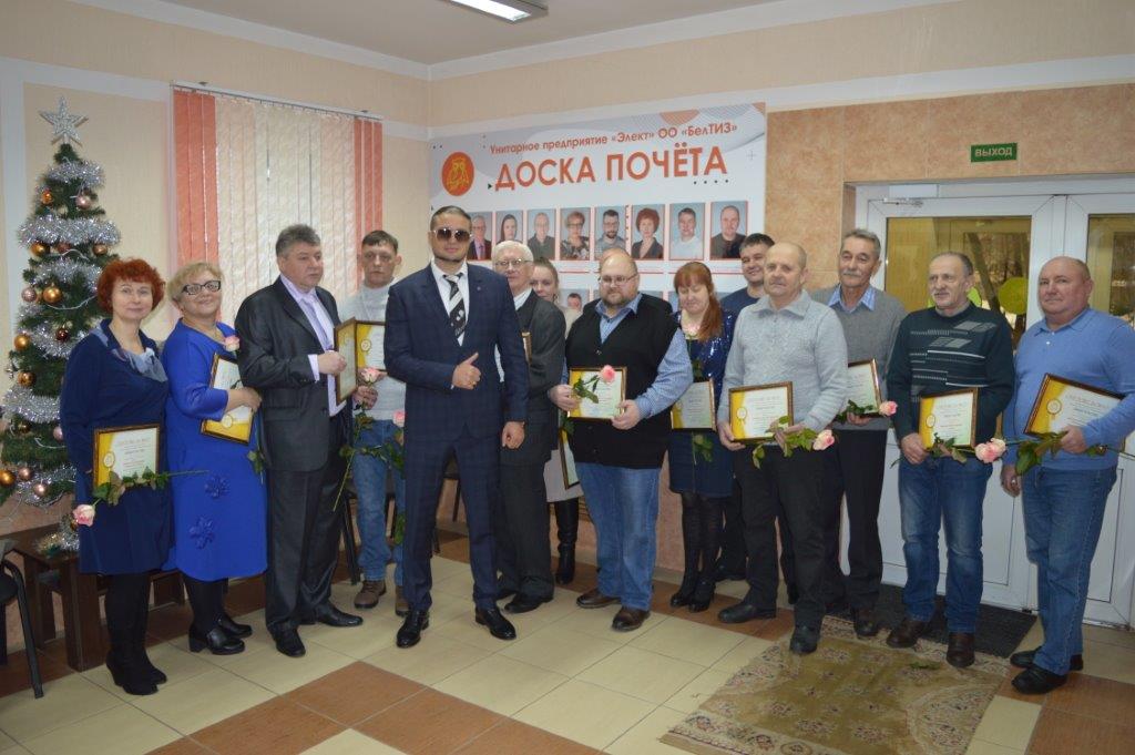 23 декабря в актовом зале собрались работники унитарного предприятия «Элект» ОО «БелТИЗ» подвести производственные итоги года уходящего, наметить социально-экономические прогнозы на год грядущий. На предприятии сложилось добрая традиция вписывать золотыми буквами имена лучших работников на Доску почёта, как знак общественного признания людей труда, которые внесли весомый вклад в развитие нашего предприятия.
