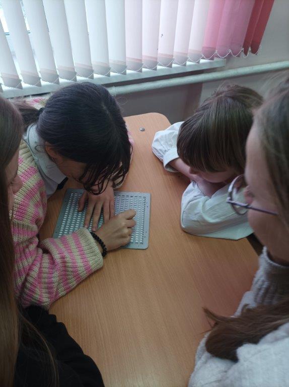 Его гостем стал инструктор-методист по социально-трудовой реабилитации унитарного предприятия "Элект" ОО "БелТИЗ" Шлома Д.В. На мероприятии Дмитрий Владимирович рассказал о жизни и возможностях незрячих людей, познакомил детей и педагогов с особенностями чтения, и письма по Брайлю, уделил внимание современным тифлотехническим средствам реабилитации.