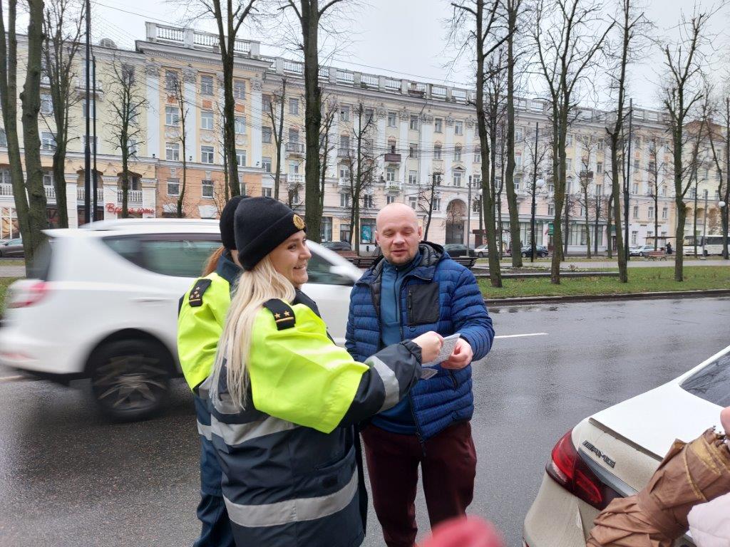 Каждому водителю, пропустившему незрячего, была выражена благодарность со стороны организаторов мероприятия и вручен буклет «Что необходимо знать при общении с незрячим». Участникам мероприятия сотрудники ГАИ вручили фликер с логотипом «ГАИ Витебщины».