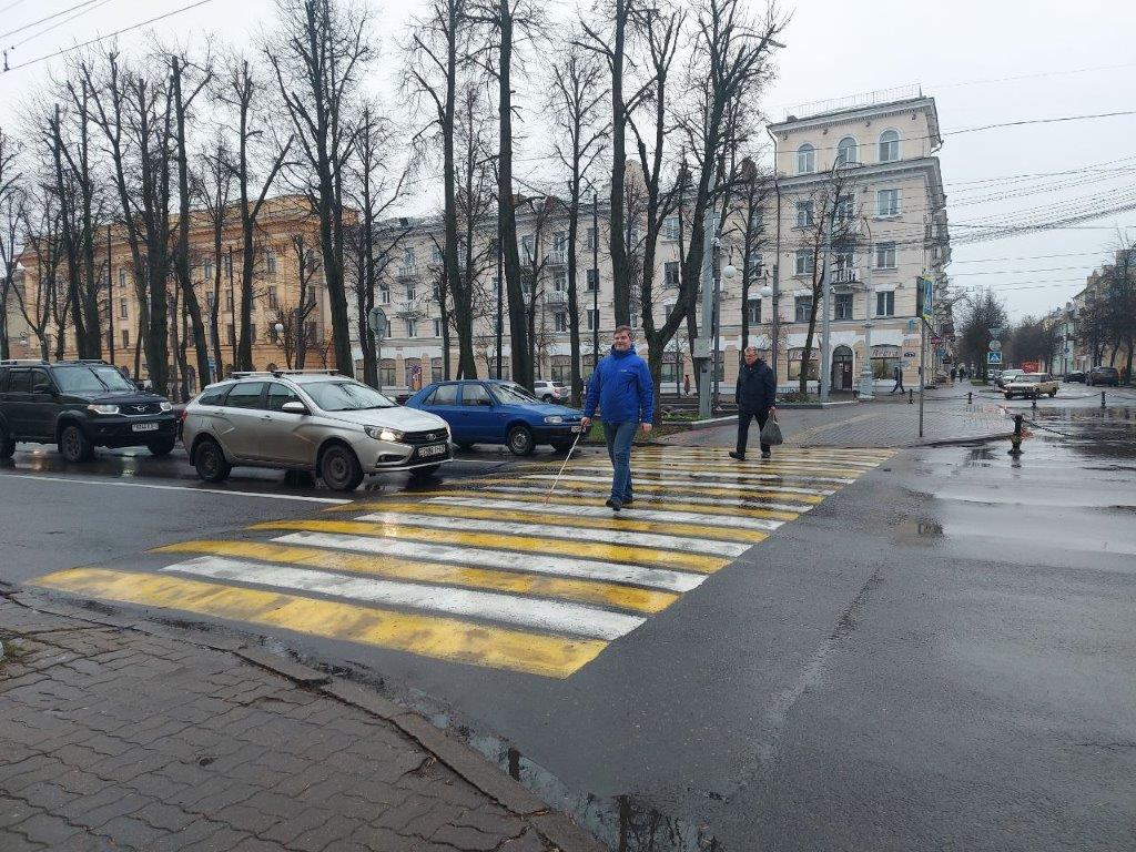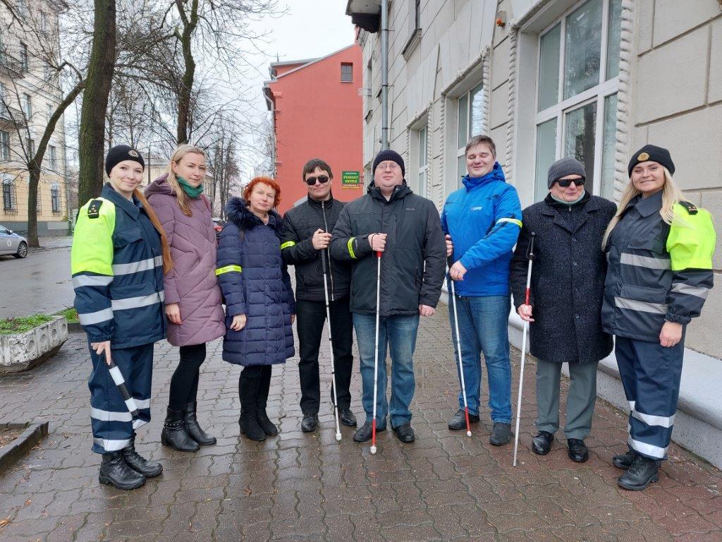 В рамках месячника «Человек с белой тростью» 12 ноября по инициативе отдела реабилитации предприятия «Элект» прошла акция «Незрячий пешеход». В ней приняли участие незрячие работники предприятия и сотрудники ГАИ УВД Витебского облисполкома.