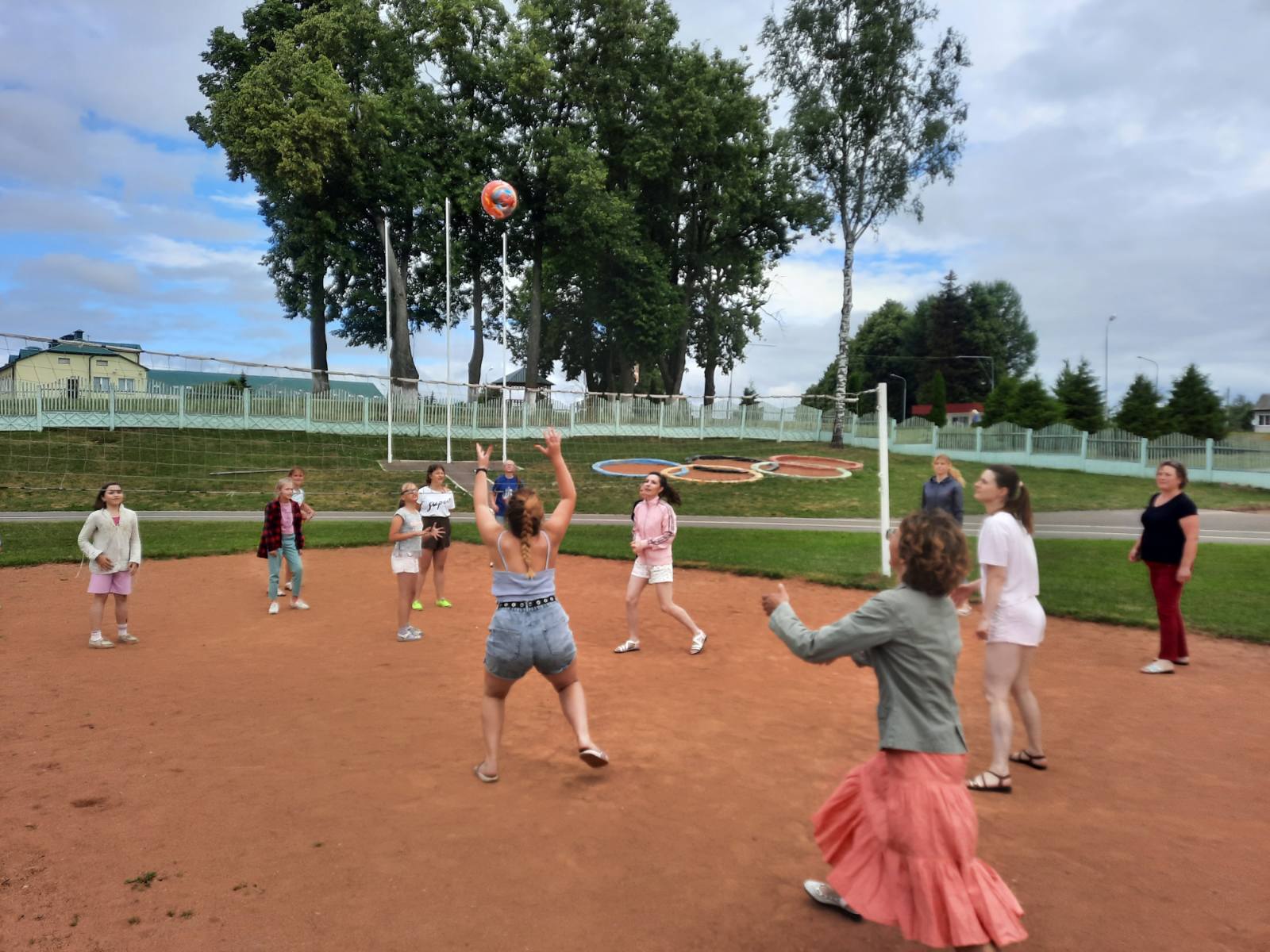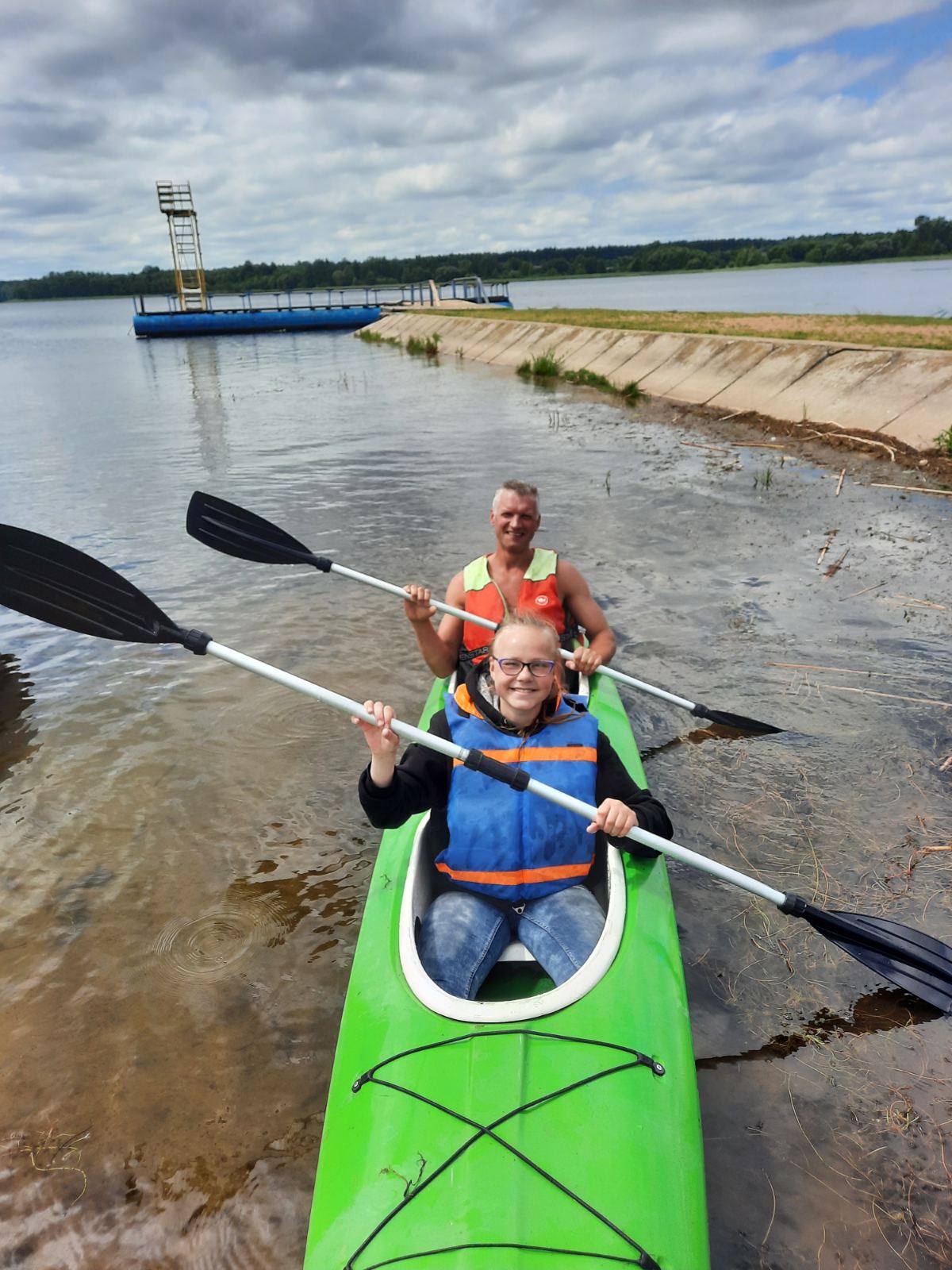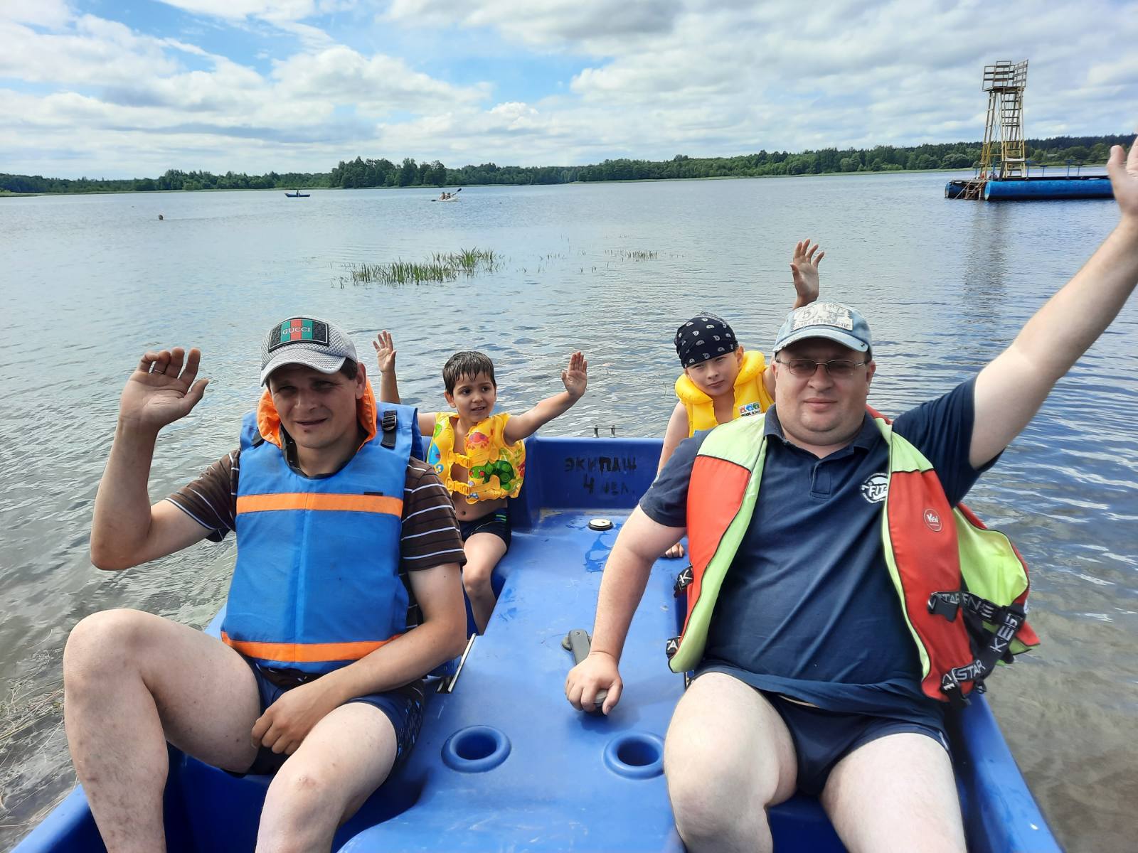 Переместившись на живописный берег озера и пройдя инструктаж опытного инструктора Алексея Юшкевича, экипажи в составе двух человек, на трех байдарках отправились покорять водные просторы. Маршрут байдарочников направлялся к острову, который находится посреди озера. Время его прохождения зависело от физической подготовки любителей активного отдыха. Все отдыхающие чудесно провели время купаясь и загорая на пляже, а также совмещая свой отдых с прогулками на катамаране, прыжками на батуте и спуском с водных горок. Веселое позитивное настроение, солнце и вода зарядили всех яркими эмоциями и незабываемыми впечатлениями.