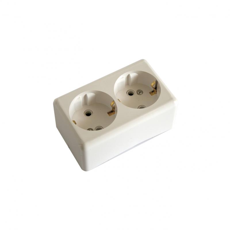 Розетка штепсельная двухполюсная двухместная открытой установки с заземляющим контактом предназначена для присоединения электрических приемников с номинальным напряжением 250 В к электрической сети переменного тока в нормальных климатических условиях внешней среды по ГОСТ 15150 и ГОСТ 15543.1.